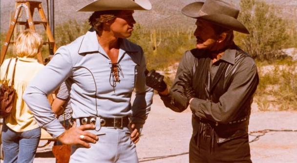 When we finally met on the set of The Villain, he couldn’t have been any sweeter to me. I was a new actor and he was the perfect mentor. He was already in his 60s but he was in unbelievable shape, and he could still jump off a trampoline into his horse’s saddle. I’ll always remember his lessons and our workouts together (back then actors trained secretly, so he’d pull his dumbbells out of his hiding place and we would do curls together).
